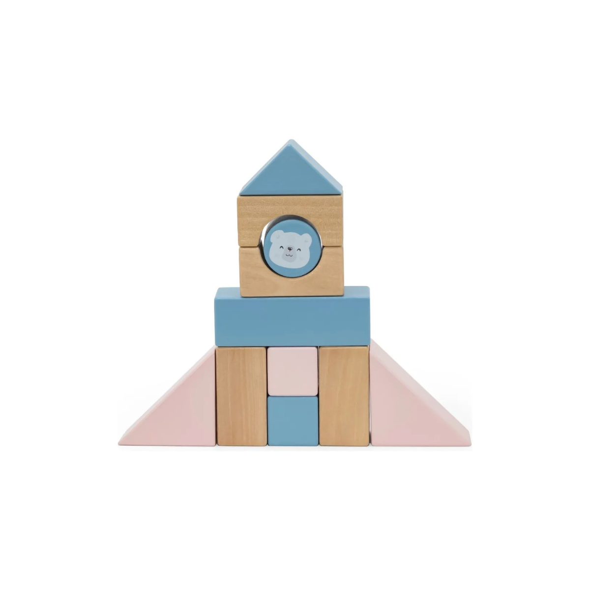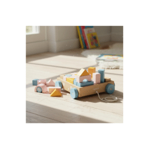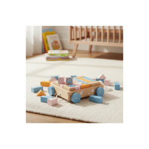 Incluye bloques de diferentes formas y tamaños, con suaves tonos naturales y textura de madera, perfectos para explorar, apilar y descubrir. Favorece la coordinación, la motricidad y el aprendizaje sensorial, mientras los peques disfrutan paseando sus juguetes y peluches 🧸.