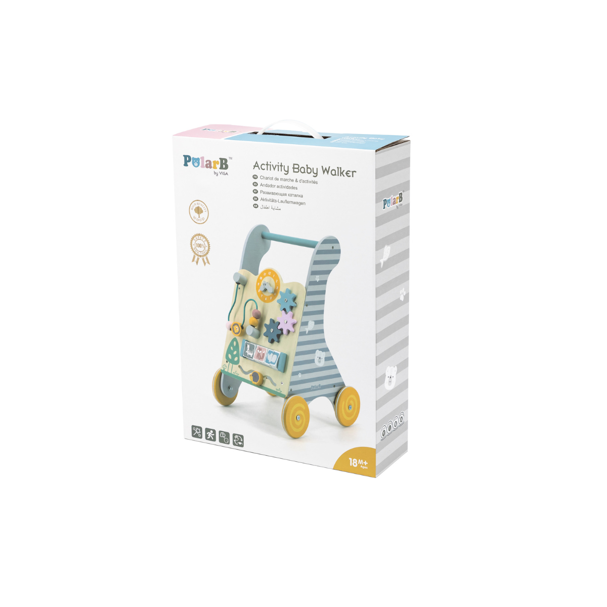 Acompañá a tu peque en el emocionante momento de sus primeros pasos con este caminador de madera con actividades de JuSa Kids. Diseñado especialmente para niños a partir de los 12 meses, ofrece una estructura robusta de madera natural de calidad, con barras y ruedas que dan soporte firme y seguro al empezar a caminar.