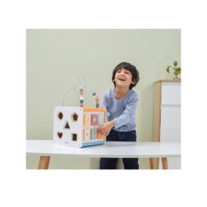 Incluye laberintos, encastres de formas, piezas giratorias, rompecabezas de animalitos y mucho más 🌈. Cada lado del cubo invita a descubrir, experimentar y aprender jugando.