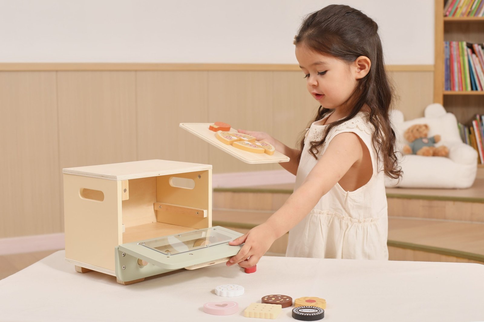 El Hornito Verde incluye 12 accesorios de comida que estimularán la imaginación de tus hijos. Entre ellos, encontrarás 6 deliciosas cookies, una mini pizza, una salchicha y una jugosa pata de pollo. ¡Tus pequeños pueden hornear, servir y compartir como verdaderos profesionales de la cocina! Esta experiencia de juego de roles no solo es entretenida, sino que también fomenta la comunicación y la interacción social entre los niños, ayudándoles a construir relaciones y habilidades interpersonales.