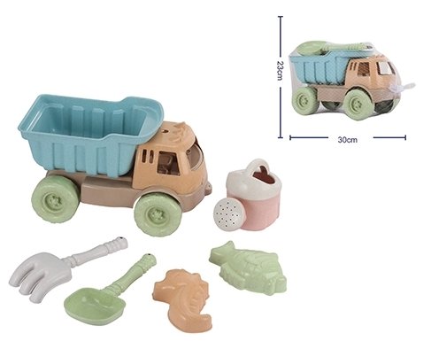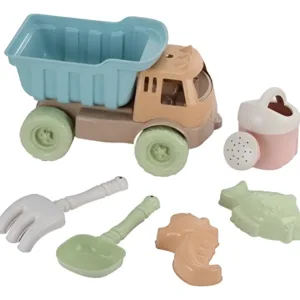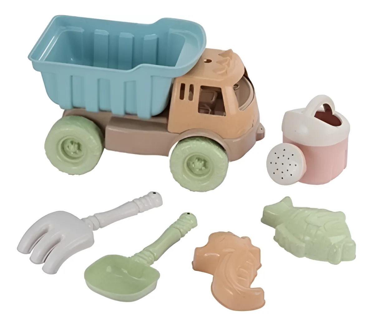 Incluye camión, regadera, pala, rastrillo y 2 moldes para crear, explorar y dejar volar la imaginación 🪣🐚.