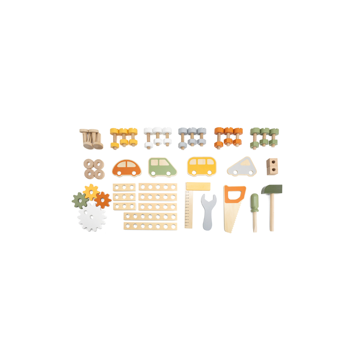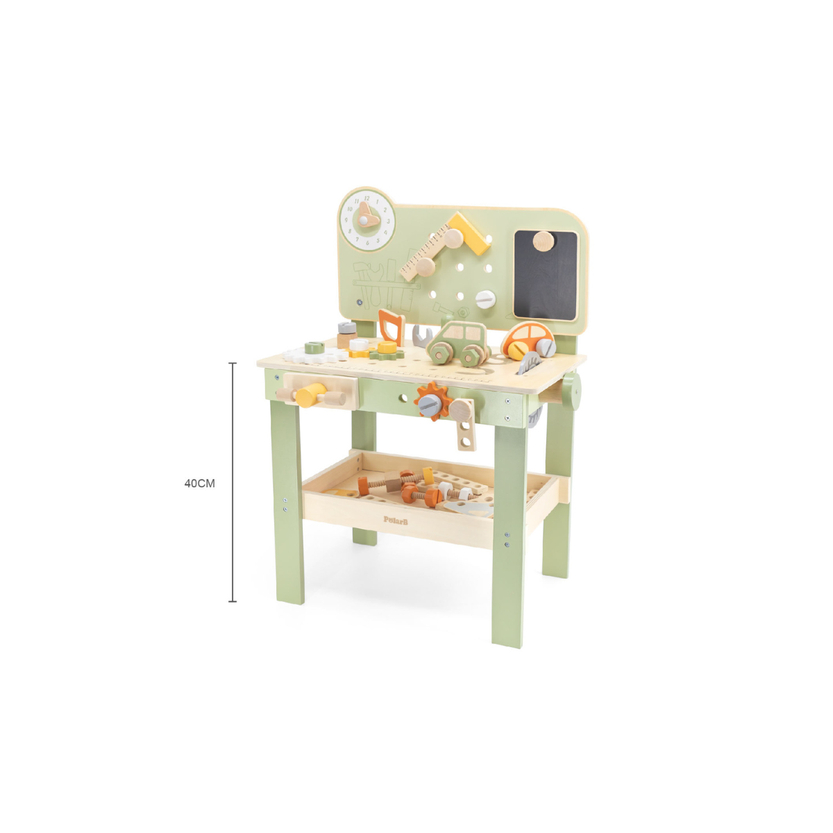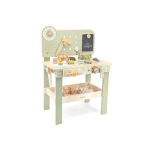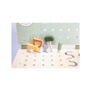 Fabricado en madera de alta calidad, este banco de herramientas combina aprendizaje, diversión y diseño encantador.