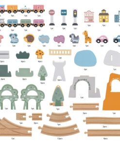 Este completo set incluye edificios, vehículos, animales, señales de tránsito y vías para crear una ciudad llena de vida y aventuras 🏙️🐻🚗.